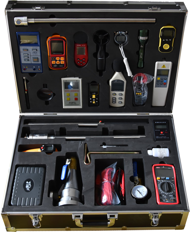 配置:不锈钢感烟探测器功能试验器1个,不锈钢感温探测器功能试验器1个,不锈钢火焰探测器功能试验器1个,线型光束感烟探测器滤光片1套(包含两片滤光片,一个手持杆及说明书合格证),消火栓测压接头1套, 喷水末端试水接头1套, 不锈钢秒表1个,数显测力计1台,强光手电1个,激光测距仪1台,数字照度计1台,数字声级计1台,数字风速计 1台,数字微压计 1台,数字温湿度计 1台,数字坡度仪 1台,接地电阻测量仪 1台,绝缘电阻测量仪1台,数字万用表 1台,漏电电流检测仪 1台, 便携式可燃气体检测仪 1台,加长杆3根,电池1根,注入器一个,扳手1个,充电器,表针。