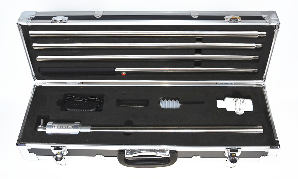 3、连接:根据高度适当选取连接杆数量,然后将枪头、连接杆、电池杆按顺时针的方向转连接。拆卸按相反的方向操作。