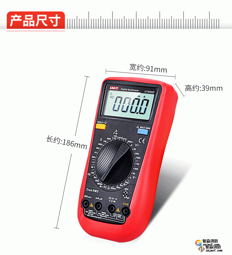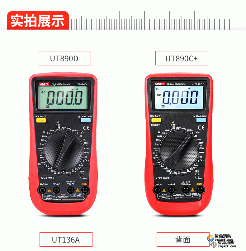 UT890系列全新一代手动量程数字万用表。自动量程100mF大电容档位,可快速测量音响功放,电源板等领域mF等级的大电容。该系列万用表具有真有效值,可准确进行非正常交流信号的有效测量;全量程保护,万用表在电阻档测试时不会由于误操作接入高压而引起烧表。在电子,家电,电器维修工作中,您需要一款耐用、可靠且精确的数字万用表。
